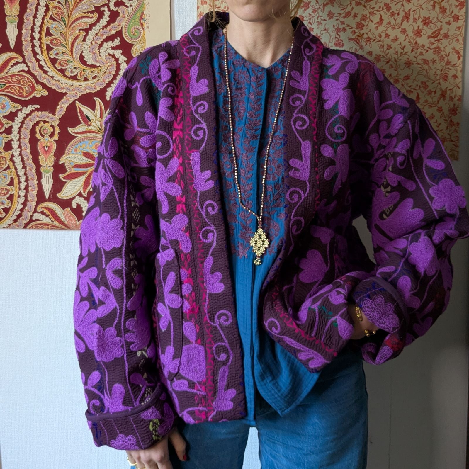Trousse maquillage Kantha brodé uni