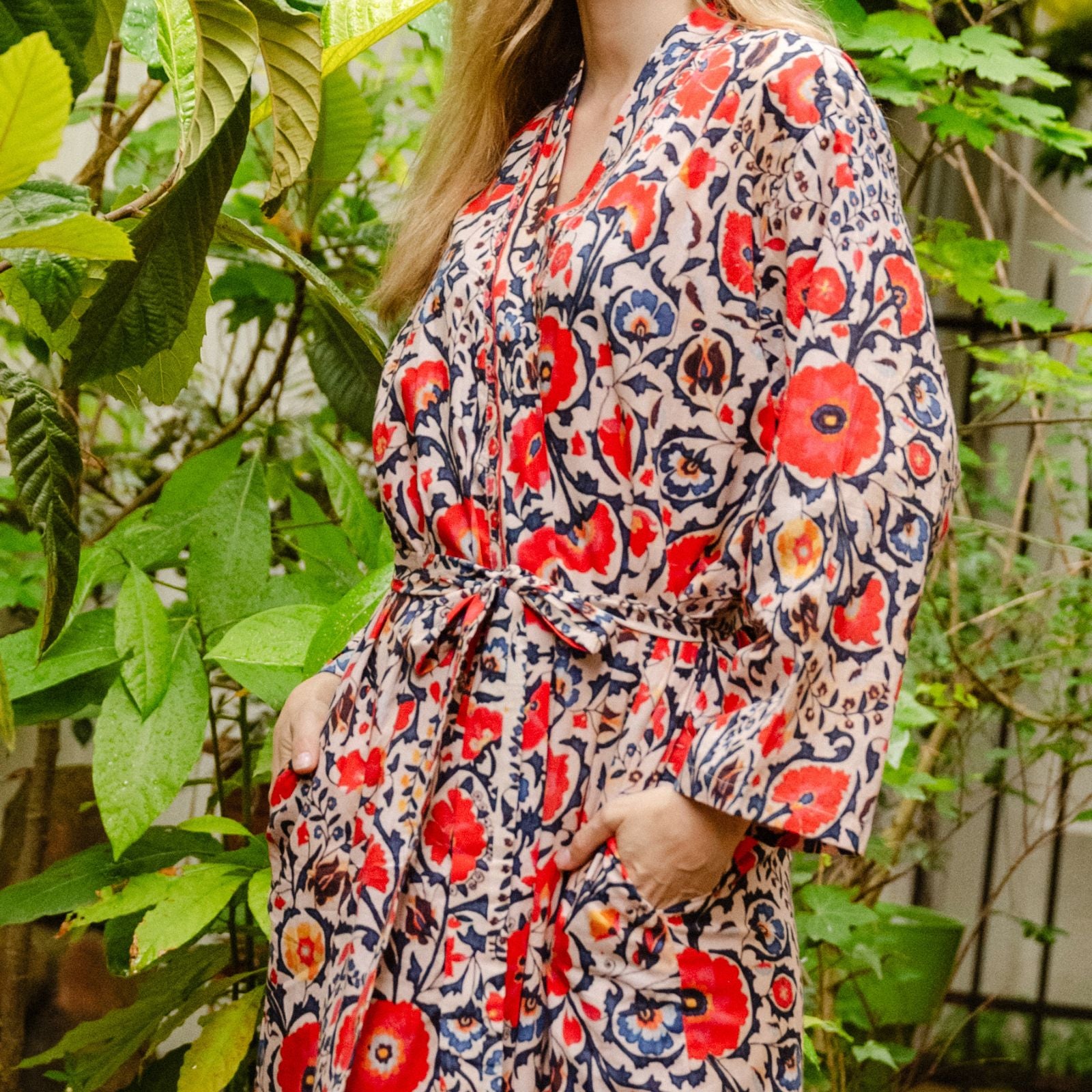 Discover our collection of kimonos with modern shapes, soft 100% cotton fabrics and wonderful patterns made by hand with a wooden block.