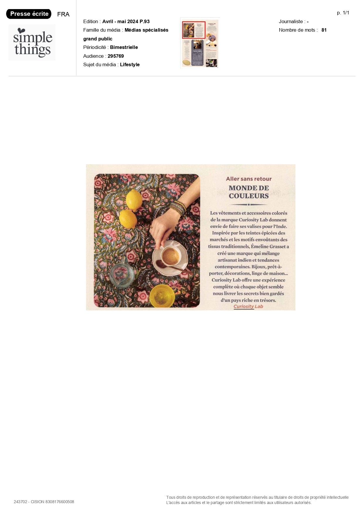"Label intemporel aux valeurs éthiques, Curiosity Lab met en avant les savoir-faire d’artisans indiens.