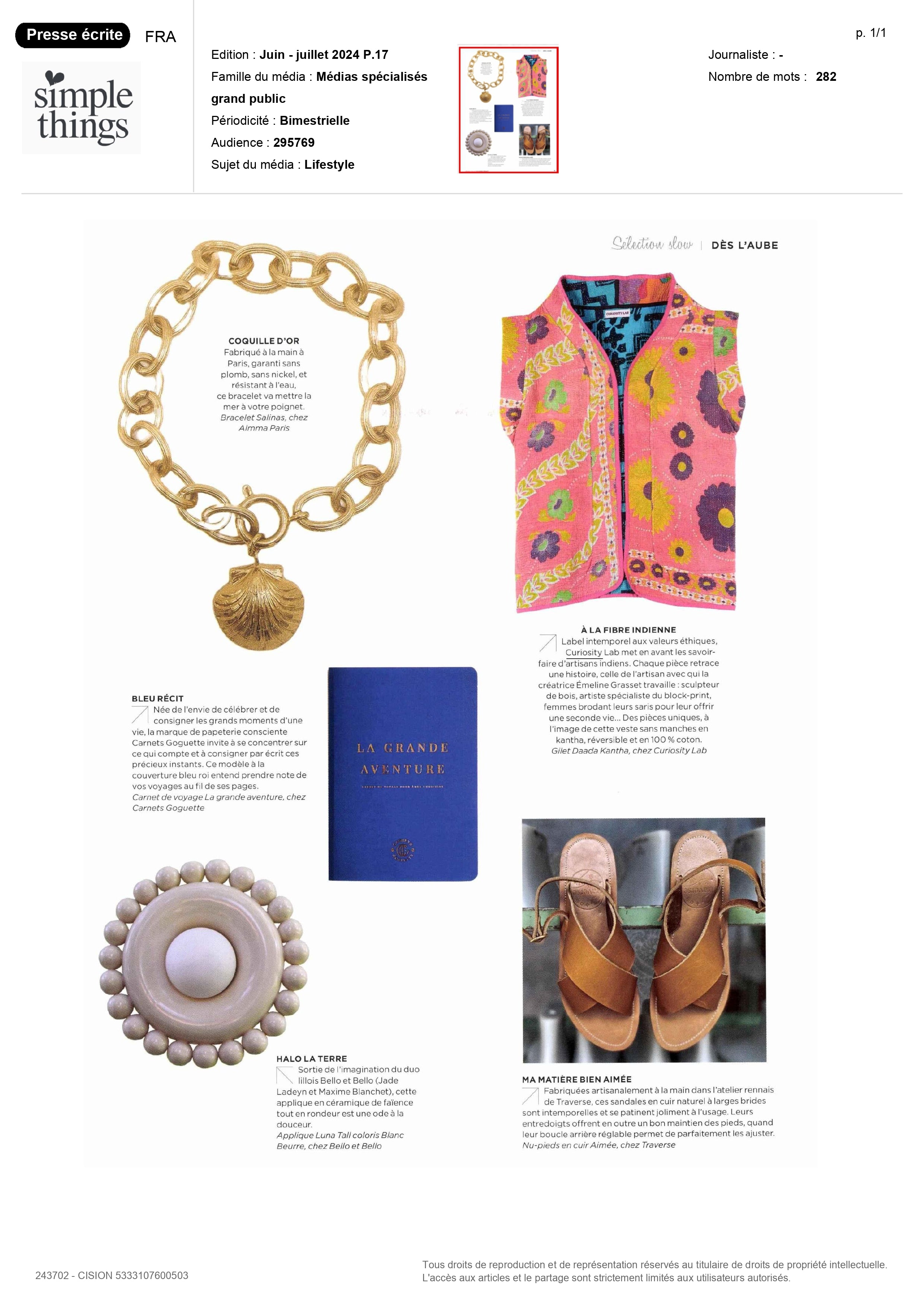 "La fondatrice, Emeline Grasset, esprit libre et créatif, a donné naissance à une marque où chaque collection est un voyage. Les pyjamas et accessoires [..] se parent de couleurs chatoyantes et de motifs fascinants. [...] Chaque pièce est une invitation à la rêverie."